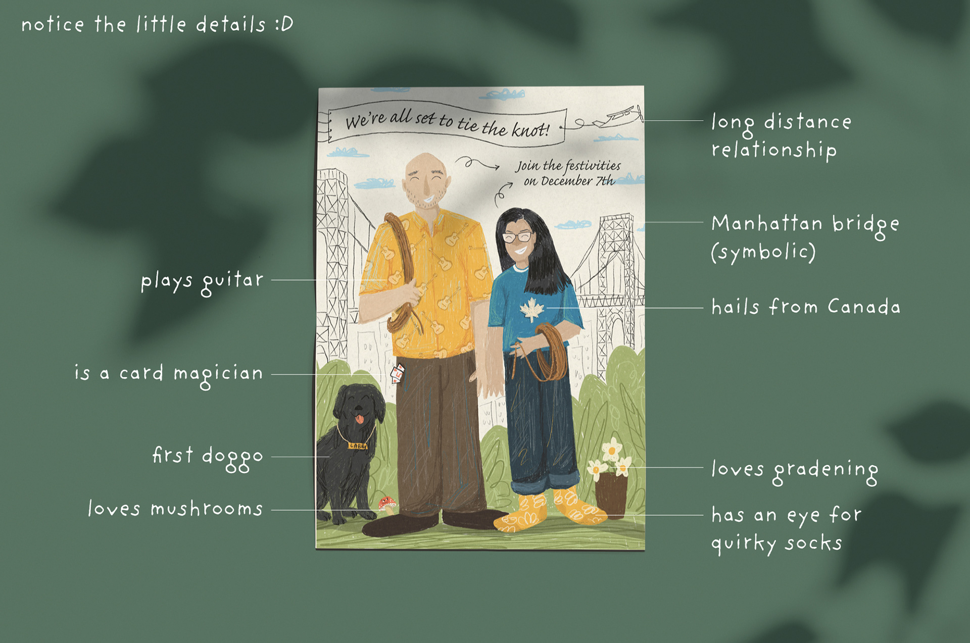 Vishal and Raksha wanted an invitation that encapsulated everything they loved about themselves and each other, with hidden details for guests to discover.
